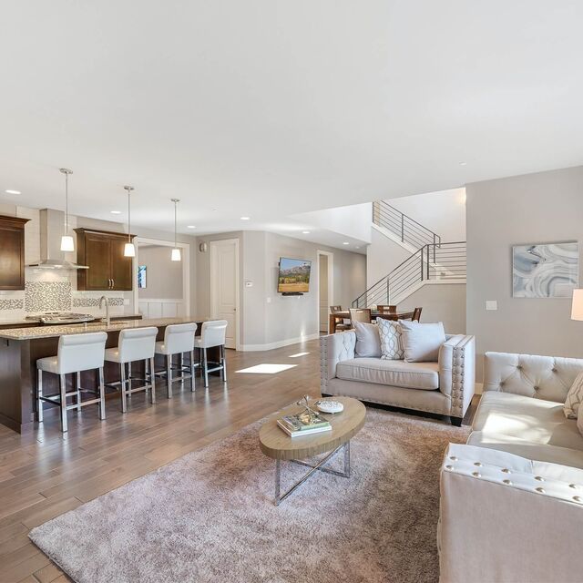 Stilvolles eingerichtetes Wohnzimmer mit Couch im Appartement
